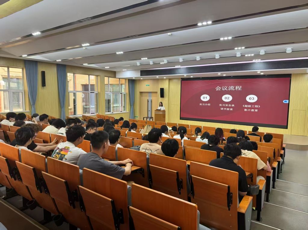 6月16日,实习在庄严的动员会中拉开序幕。指导老师秦芬强调实习流程与注意事项,学生签署实习承诺书,学生代表宣读安全承诺书。集体观看纪录片《超级工程》,感悟中国基建的科技伟力,点燃投身国家建设的使命感。
