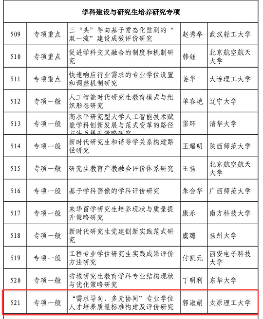 本次全国拟立项共540项,其中,山西省拟立项共5项,永利集团304am登录拟立项2项。本次学院共申报3项,立项比率达到33.3%。