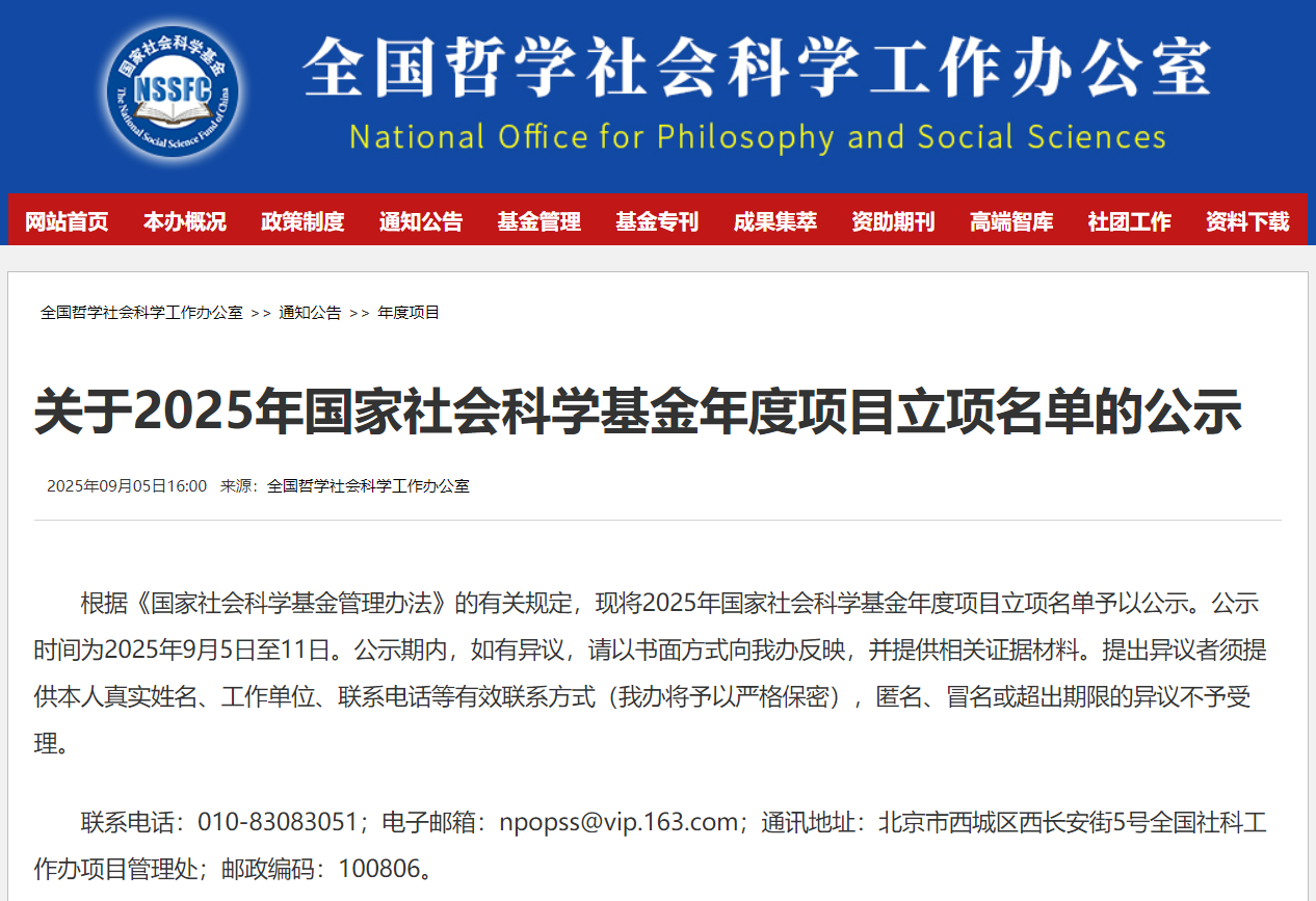 9月5日,全国哲学社会科学工作办公室发布了“关于2025年国家社会科学基金年度项目立项名单的公示”,我院张国珍副教授申报项目获批(见下表),占全校立项总数的33.3%。