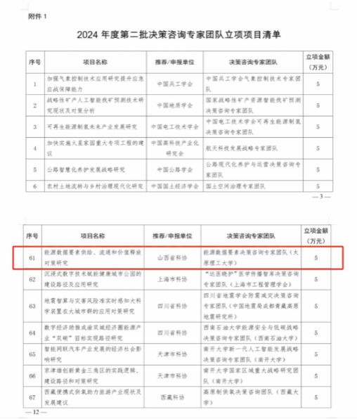 2024年12月2日,山西省科协推荐的永利集团304am登录能源数据要素决策咨询专家团队及依托该团队的“能源数据要素供给、流通和价值释放对策研究”项目同时获得了中国科协的批准,是永利集团官网在能源数据要素领域的一个突破。‌中国科协决策咨询项目‌是由中国科协战略发展部组织实施的一系列项目,旨在为党中央和国务院的科学决策提供决策参考,助力推动我国科技自立自强和国际科技合作与创新。