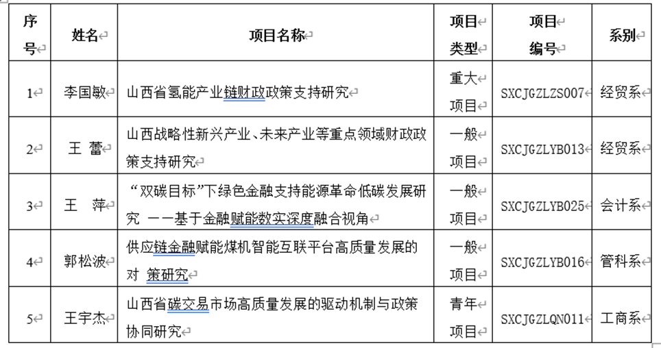 1月27日,山西省人民政府决策咨询委员会办公室、山西省地方金融管理局、山西省社会科学院(山西省人民政府发展研究中心)发布了“2024 年度山西省财经高质量发展重大专项研究课题立项名单”,我院获批5项,占全校立项总数的100%。拟立项项目名单如下。