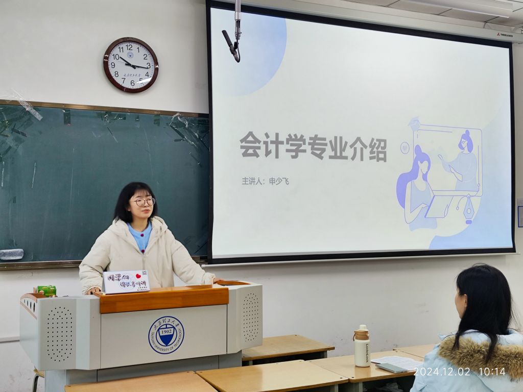 在青年教师“讲”专业环节,王蕾、申少飞、王建新、张荣霞四位老师分别作为国际经济与贸易、会计学、物流管理、工程管理专业的代表,凭借其深厚的专业知识储备和丰富的教学经验,为同学们深入浅出地解读了各专业的学科内涵、课程设置、培养目标以及未来的就业前景。老师们从宏观的专业体系架构到微观的专业核心要点,都进行了细致入微的讲解,不仅让同学们对所学专业有了更为清晰、全面的认识,也激发了他们深入探究专业知识的热情和兴趣。