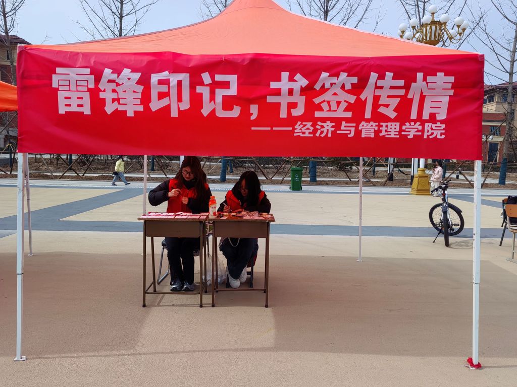 为弘扬雷锋精神,践行社会主义核心价值观,3月5日学雷锋纪念日当天,经济与管理学院于永利集团304am登录明向校区西区小广场举办了“雷锋印记,书签传情——雷锋书签DIY活动”。全校学生踊跃参与,通过创意手绘书签,感悟雷锋精神,传递温暖力量。