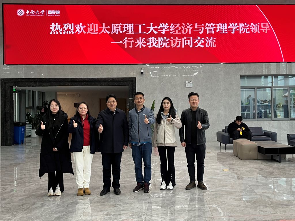 331日,经济与管理学院党委副书记杨振东、学工办副主任张志卿、MBA校友会秘书长解颖一行赴中南大学商学院调研交流,重点学习MBA项目创新模式、校友资源整合及国际认证经验。中南大学商学院党委副书记陈迎明、专业学位教育中心与校企合作及校友事务办公室主任易经章、对外交流与国际办公室主任万萍等参加座谈,双方围绕商科教育高质量发展展开深入探讨。