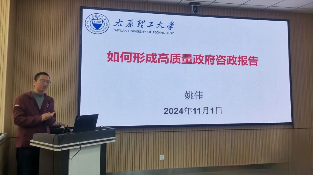 11月1日上午,天津科技大学姚伟教授应邀做客经管大讲堂,于明向校区经管楼229会议室作了题为“如何形成高质量政府咨政报告”的讲座。经济与管理学院党委书记闫新、副院长陈怀超出席报告会,学院部分教师聆听了报告,院长栗继祖主持报告。
