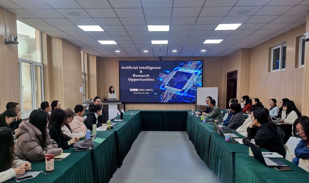 11月22日上午,北京大学光华管理学院副教授张颖婕应邀做客经管学术大讲堂,于明向校区经管楼229会议室作了题为“Artificial Intelligence & Research Opportunities”的学术报告。经济与管理学院院长栗继祖、副院长陈怀超出席报告会,学院部分教师、研究生以及山西大学、山西财经大学等高校部分教师聆听了报告。
