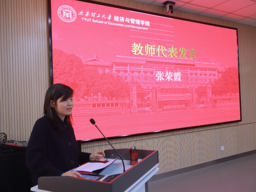 教师代表张荣霞副教授用“天道酬勤,凡事感恩”、“我们要相信美好,期待美好”、“追风赶月莫停留,平芜尽处是春山”三个主题句进行了精彩发言。她表示,新的一年将继续与团队老师一起,在教书育人、科研报国的征途上迈步向前,为管科发展做出属于自己的贡献。