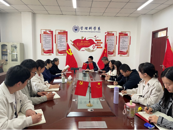 为深入贯彻中央八项规定精神学习教育,切实加强党的作风建设,4月24日下午,管科系党支部在226会议室开展深入贯彻中央八项规定精神学习教育主题党课,学院副院长王天日教授莅会指导,会议由支部副书记何学松主持。 主题党课第一阶段,何学松副书记就中央八项规定精神的核心要义及党的作风建设的实践路径进行领学,重点围绕改进调查研究、精简会议活动、厉行勤俭节约等中央八项规定所涉及的核心内容及加强党的作风建设的四个核心举措展开解读。...