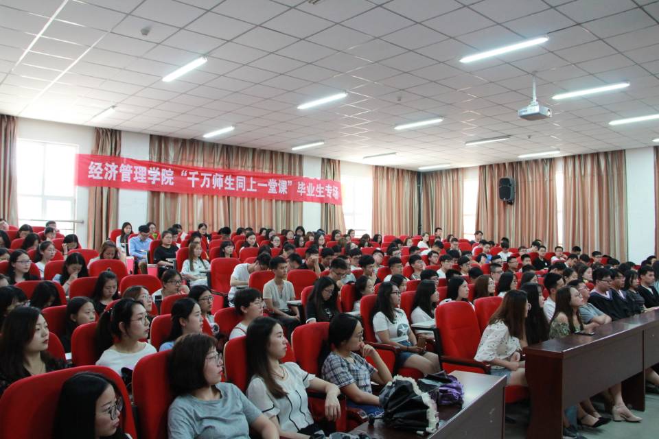6月14日下午,永利集团304am登录在明向校区经管报告厅召开“学习新思想,千万师生同上一堂课”毕业生专场暨毕业生工作会议,院党委书记李玮、副书记杨振东及毕业班辅导员、班主任出席会议,2018届全体毕业生参会,会议由杨振东主持。